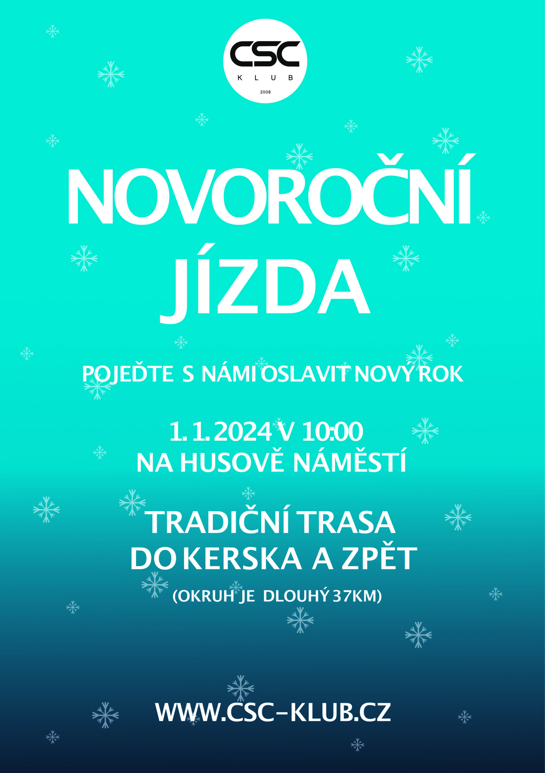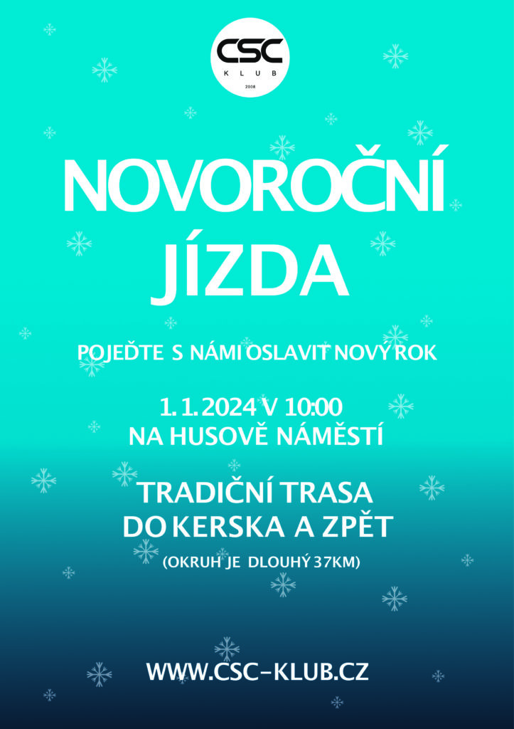 Jako každý rok vám chceme pozvat na tradiční novoroční jízdu, která bude startovat z Husova náměstí v Českém Brodě v 10hod. Trasa bude beze změny do Kerska k prameni a zpět, cca 37km.